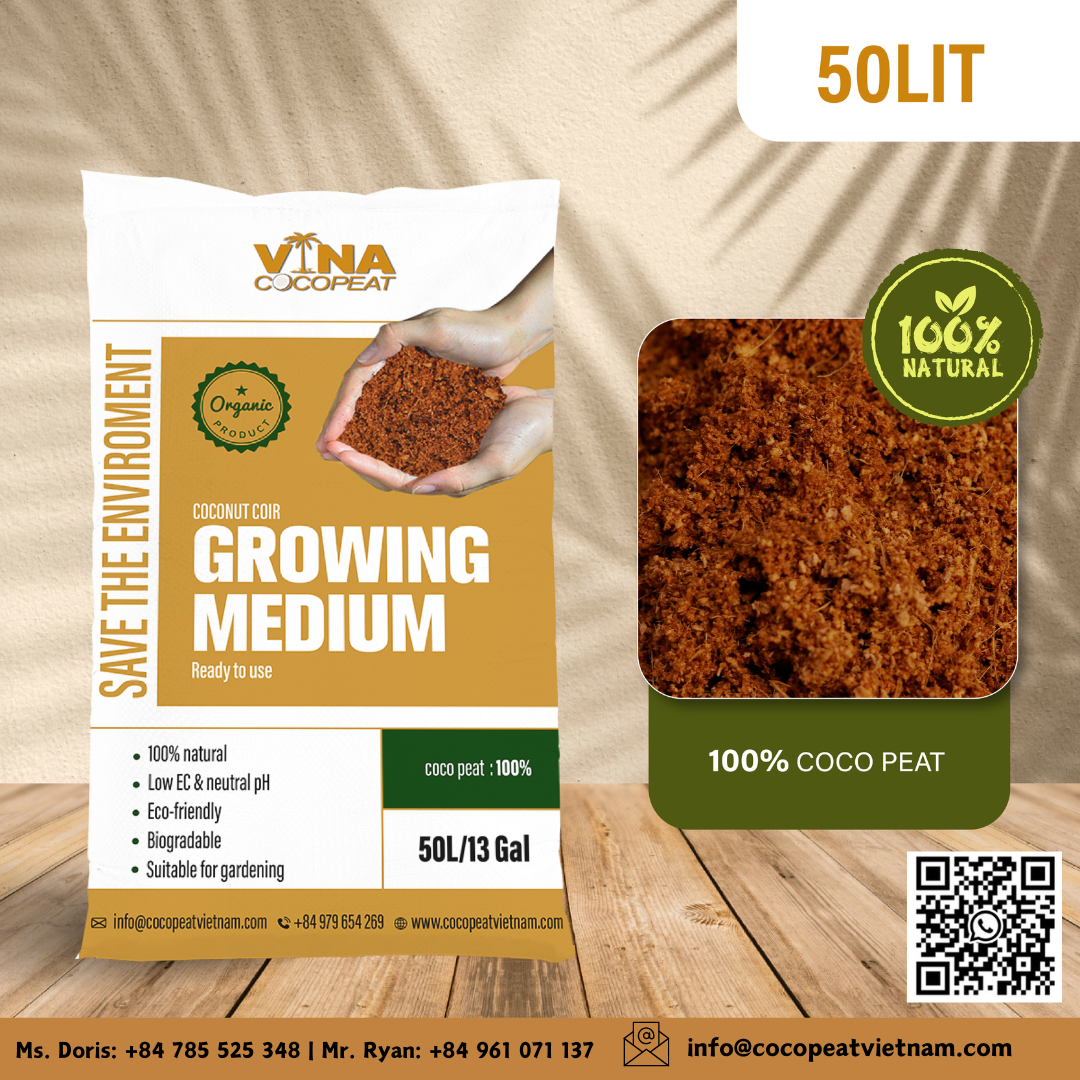 - Coco peat is often mixed with Perlite/ Coco Chips/ Coir Fiber to enhance drainability and the gas gap.