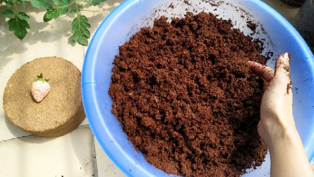 Xơ dừa hoặc than bùn ở dạng nén, nó nở ra và tăng lên đến 5 hoặc 6 lần về thể tích sau khi hoàn nguyên. Chỉ chia nhỏ số lượng bạn định sử dụng.